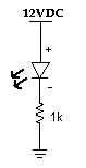 The forward bias current of a typical LED ranges between 10 and 20 mA for maximum brilliance. A 1 kohm resistor in series with a 12 V DC source will caused it to operate at 12 mA. In order to ensure the lifetime of it is preserved, do not exceed the maximum rating of the current. The voltage drop across it is typically 1.8 to 2.0 V DC.